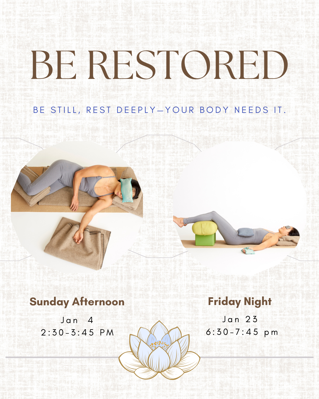 We will move slowly, break things down, and create plenty of space for questions along the way. There is no pressure to keep up or get it “right.” This workshop is about helping you feel comfortable, supported, and at home on your mat at Be Here Yoga.